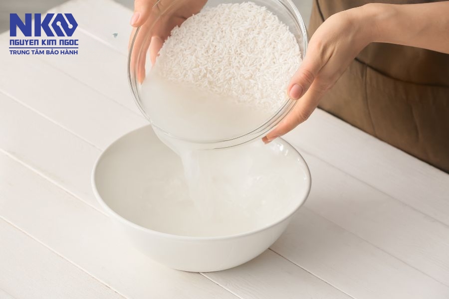 Một cách đơn giản và hiệu quả để làm sạch bếp từ là sử dụng nước cơm. Hãy thoa một lớp nước cơm lên bề mặt bếp từ và chờ một lúc để nước cơm hấp thụ các vết bẩn và dầu mỡ (Khoảng 10-15 phút). Sau đó, lau sạch bằng khăn mềm.